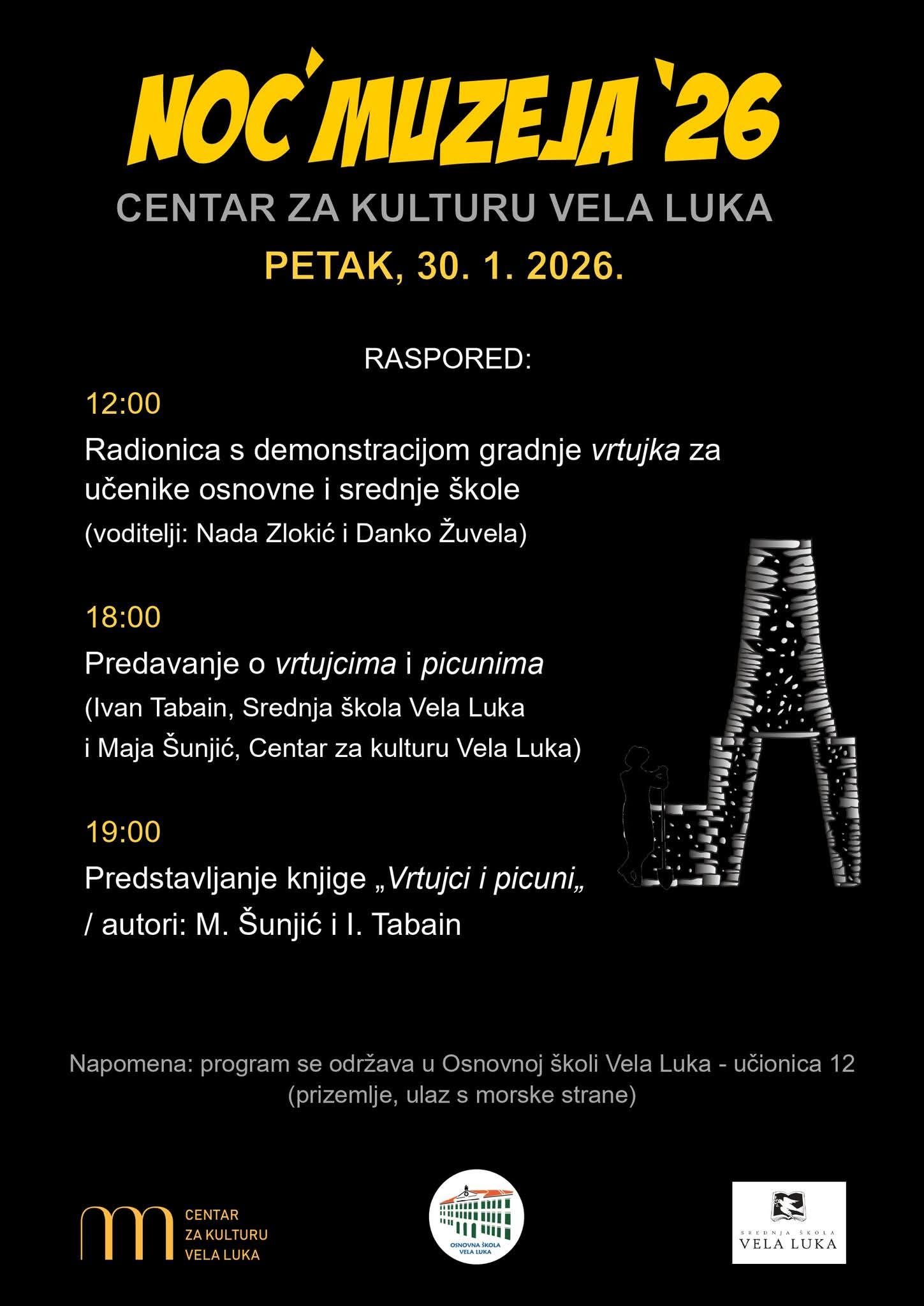 Luški program Noći muzeja će se odvijati pod nazivom "𝐈𝐆𝐑𝐀 𝐔 𝐊𝐀𝐌𝐄𝐍𝐔: 𝐕𝐑𝐓𝐔𝐉𝐂𝐈 𝐈 𝐏𝐈𝐂𝐔𝐍𝐈" i u potpunosti je posvećen vrtujcima i picunima, jednostavnim suhozidnim građevinama - skloništima, u čijoj se gradnji primjenjuje konzolna tehnika gradnje.