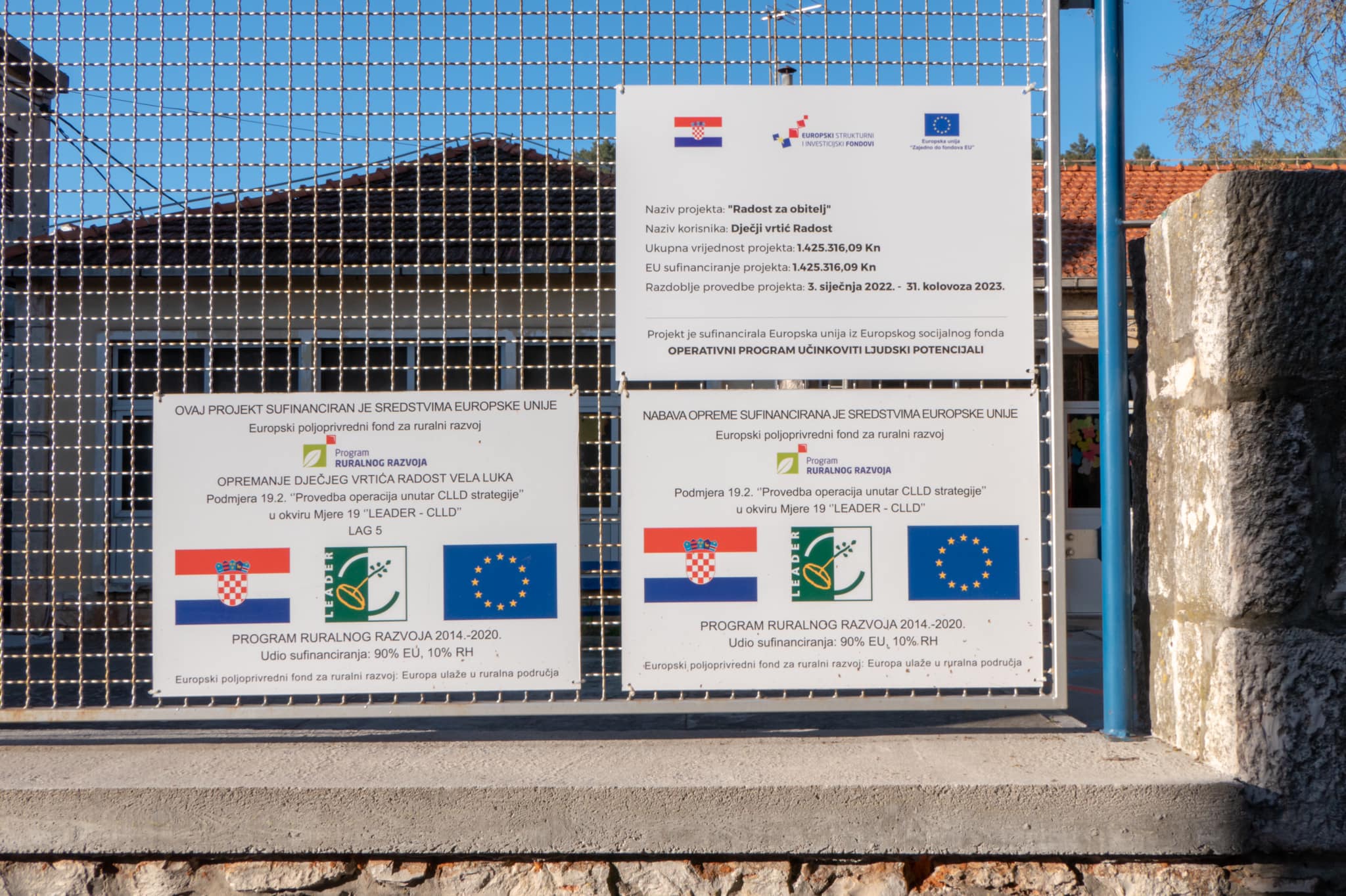 Projekt “Radost za obitelj” odobrilo je Ministarstvo rada, mirovinskog sustava, obitelji i socijalne politike u sklopu poziva UP.02.2.2.16 Nastavak unaprjeđenja usluga za djecu u sustavu ranog i predškolskog odgoja i obrazovanja iz Operativnog programa Učinkoviti ljudski potencijali 2014. – 2020. iz Europskog socijalnog fonda. Ugovor o realizaciji projekta potpisan je 2. siječnja ove godine, što ujedno označava i službeni početak projekta čije je ukupno trajanje 20 mjeseci.