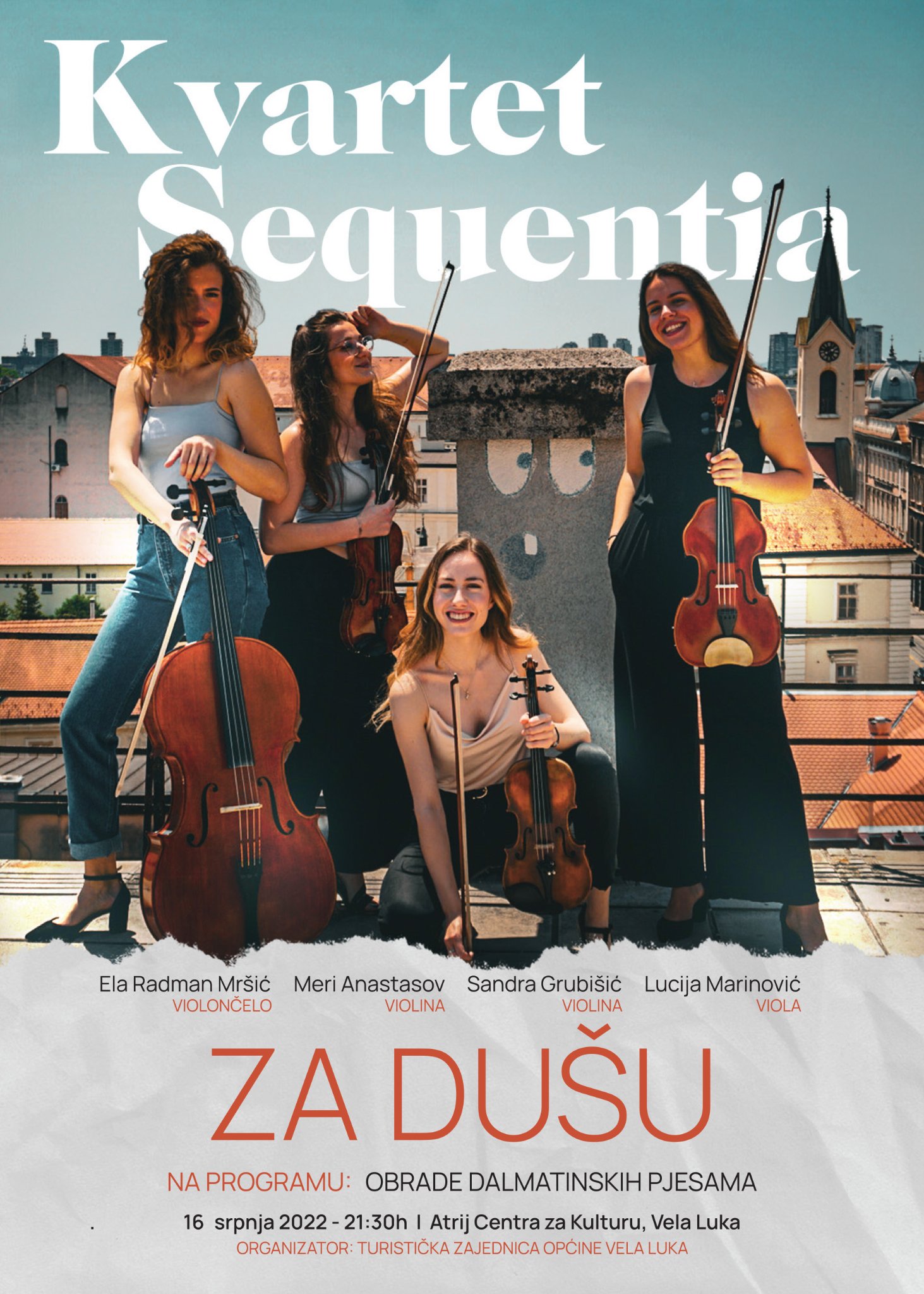 Koncert gudačkog kvarteta Sequentia održat će se 16. 7. 2022., u 21:30h, u organizacij TZ Vela Luka.