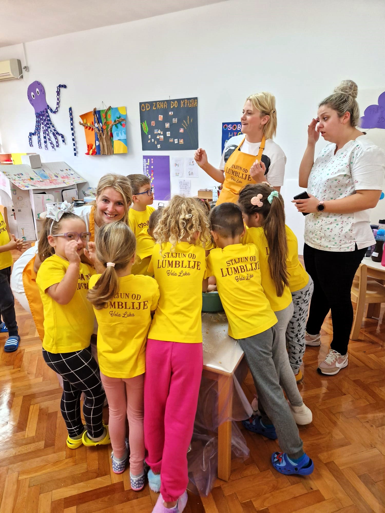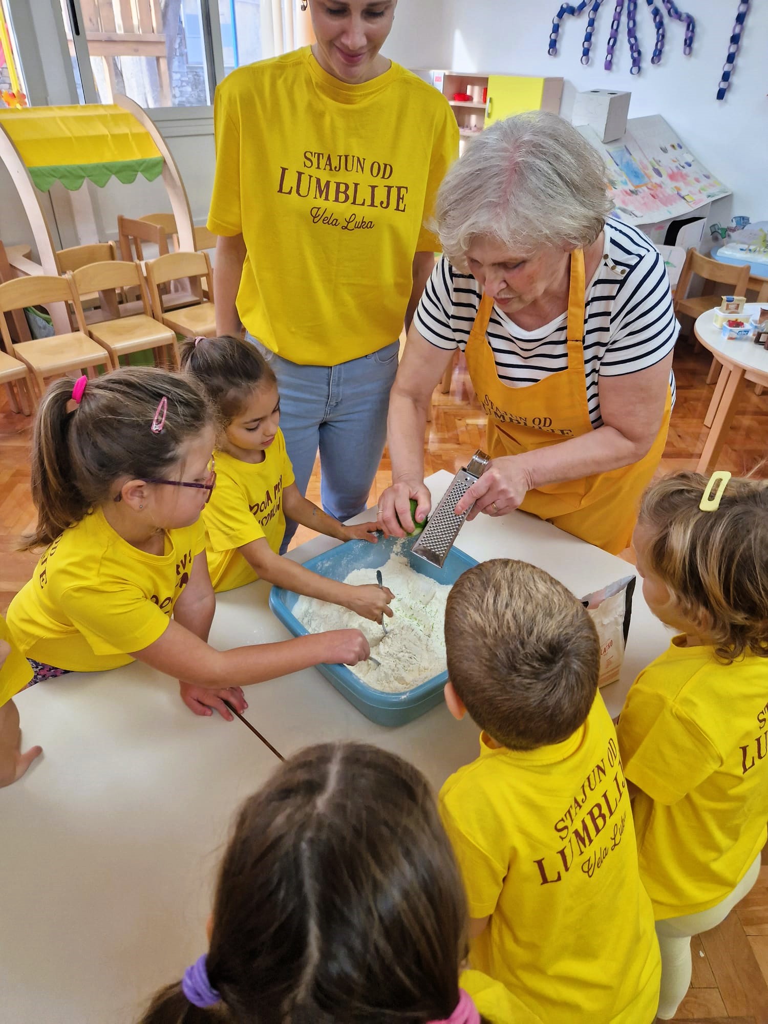 Kako bi njegovali običaje i prenosili tradiciju na naše buduće naraštaje, svoje prve lumblije zamijesili su jutros veseli predškolci dječjeg vrtića „Radost“ pri čemu su im pomogle načelnica Katarina Gugić, dugogodišnja članica natjecanja za „Zlatnu lumbliju“ Radenka Barčot, ravnateljica Miranda i teta Antonija.
