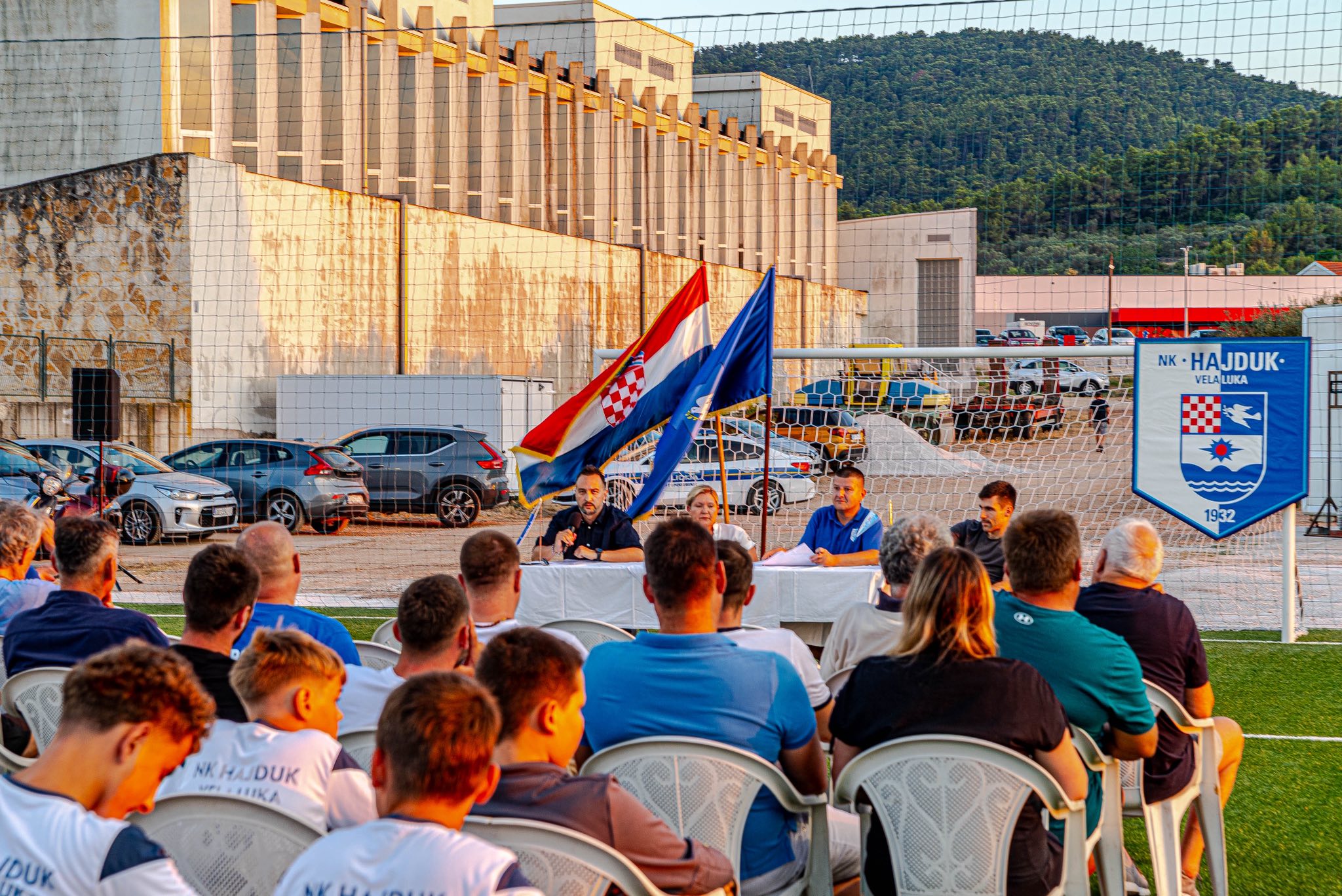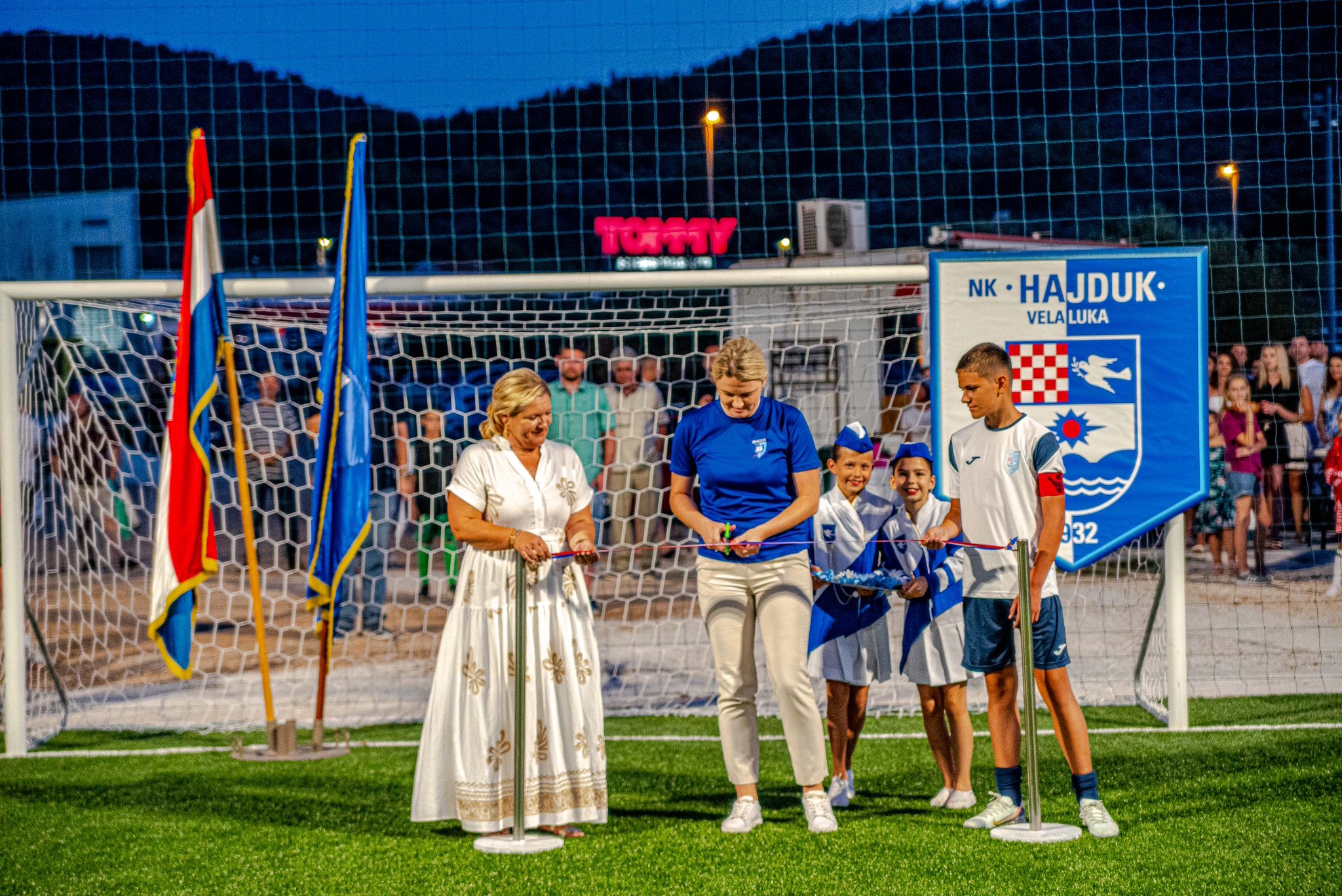 “Projekt pomoćnog nogometnog terena na Močnom lazu se razvija kroz cijeli četverogodišnji period uprave NK Hajduka, i na našu sreću uspješno je i konačno realiziran. Vrijednost projekta iznosi otprilike 170.000 eura, i financiran je u najvećem dijelu od sredstava općinskog proračuna kao odvajanja za sport, sredstava od Zajednice športova Vele Luke, potom od sredstava odobrenih od strane Hrvatskog olimpijskog odbora kroz program Aktivne zajednice u 2025.g., uz podršku Zajednice sportova Dubrovačko-neretvanske županije, te od klupskih sredstava koji su namjenski prikupljani kroz organizaciju raznih nogometnih i malonogometnih turnira, koncerata i zabavno-sportskih programa, rekla je načelnica Katarina Gugić, prilikom subotnjeg tovnija pomoćnog nogometnog igrališta u Veloj Luci. Glavni izvođač radova je Obrt Kole, vlasnika Tea Šeparovića iz Vele Luke, fazu postavljanja umjetne trave izveo je Centar sporta i nogometa d.o.o. iz Zagreba, a postavljanje rasvjete izvela je splitska firma Znam d.o.o. Tijekom pripreme i provedbe projekta donatorski su sudjelovali arhitektski ured Tim bolje iz Vele Luke i geodetski ured Gauss iz Splita. Novi teren služit će za poboljšanje infrastrukturnih uvjeta trenažnih procesa svih ekipa I igrača kluba, posebno mlađih kategorija, kad zbog vremenskih uvjeta I stanja glavnog terena to ne bude moguće, a ostatak vremena, pretežito u kasnim popodnevnim satima bit će komercijalno dostupan I rekreativcima. Na kraju, ali nikako manje bitno, moramo istaknuti veliki broj pojedinaca, članova, navijača, ljubitelja sporta I Hajduka, koji su nesebično odvojili svoje vrijeme i znanje kako bi sve ovo danas imalo neki smisao.