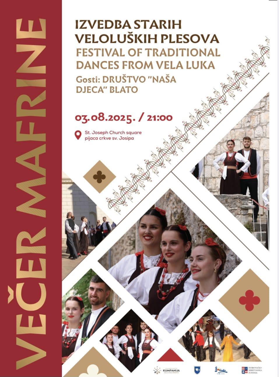 𝐕𝐞𝐜̌𝐞𝐫 𝐌𝐚𝐟𝐫𝐢𝐧𝐞 ove će se godine održati 𝟑. 𝐤𝐨𝐥𝐨𝐯𝐨𝐳𝐚 (𝐧𝐞𝐝𝐣𝐞𝐥𝐣𝐚) s početkom u 𝟐𝟏:𝟎𝟎 𝐬𝐚𝐭 na 𝐩𝐢𝐣𝐚𝐜𝐢 𝐂𝐫𝐤𝐯𝐞 𝐬𝐯. 𝐉𝐨𝐬𝐢𝐩𝐚.