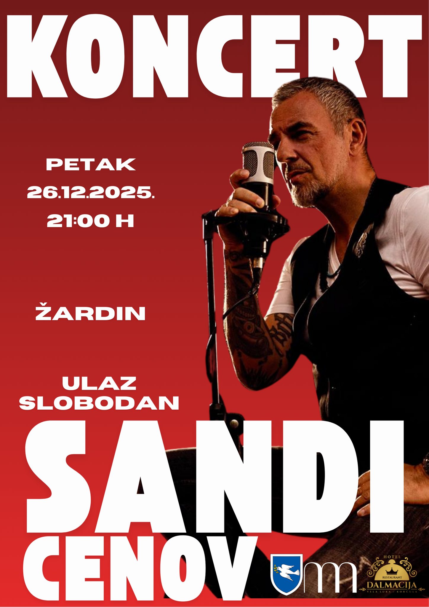 U petak, 26. prosinca, u 21 sat, u središnjem Žardinu u Veloj Luci održat će se koncert Sandija Cenova – glazbenika koji je obilježio hrvatsku scenu devedesetih i koji i danas okuplja publiku svih generacija.
