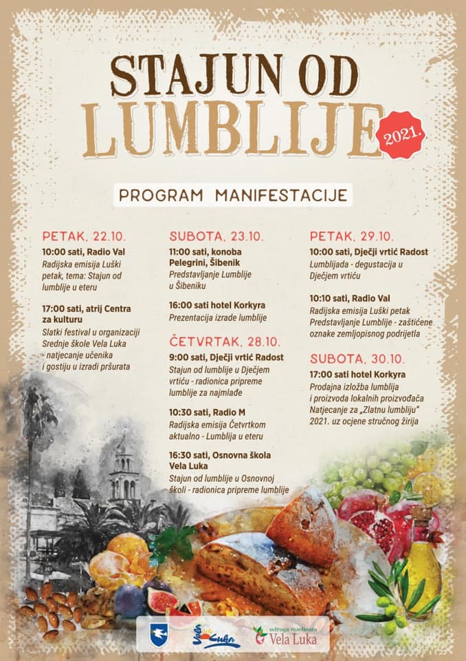 Općina Vela Luka u suradnji sa Turističkom zajednicom i Udrugom maslinara Vela Luka organiziraju ove godine u Veloj Luci peto izdanje manifestacije „Stajun od lumblije“ u terminu od 22.- 30.10.2021. god.