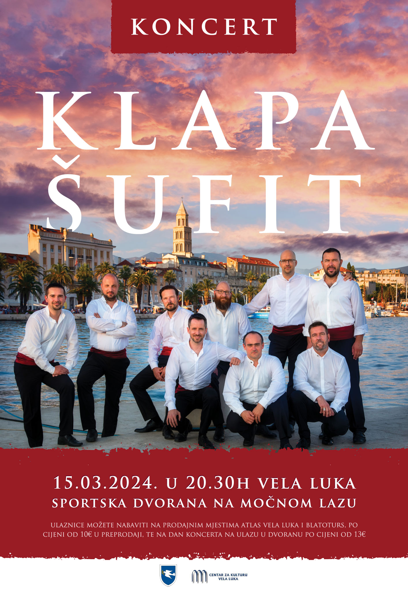 Zaljubljenici u klapsku pjesmu 15. ožujka doći će na svoje, u Sportsku dvoranu na Močnom lazu povodom proslave Dana Općine Vela Luka i blagdana sv. Josipa, stiže jedna od najuspješnijih hrvatskih klapa, dobitnici brojnih nagrada i priznanja, promicatelji dalmatinske klapske pjesme, sjajna splitska klapa Šufit!