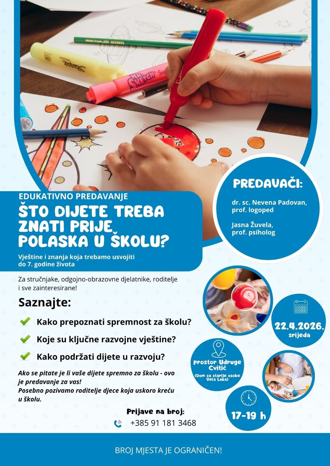Edukaciju je vodila Leona Podbevšek, magistrica struke i vlasnica Limit Push Design studija za digitalni marketing. Događaj se održao u četvrtak, 16. travnja, u 18:30 sati u Općinskoj vijećnici u Veli Luci, a trajao je 40 minuta. Sudjelovanje je bilo besplatno.