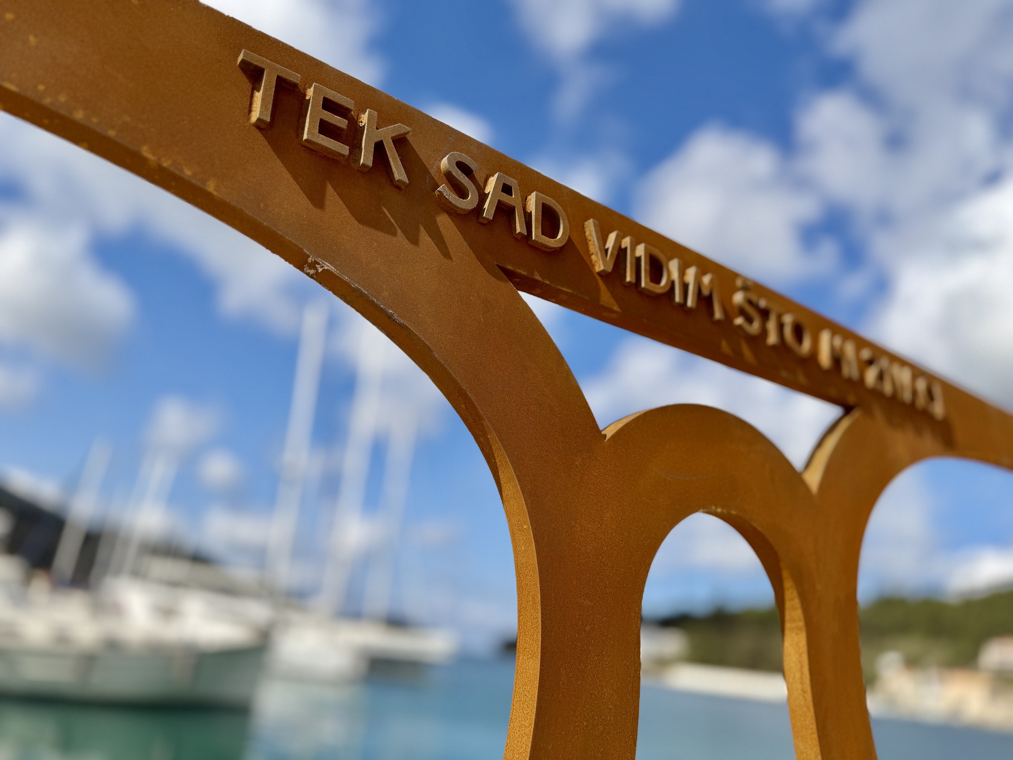 Naziv instalacije nosi stih iz pjesme „Tek sad vidim što mi znači, Vela Luka, more ti…“ i upravo taj osjećaj želimo podijeliti sa svima koji ovdje dođu.