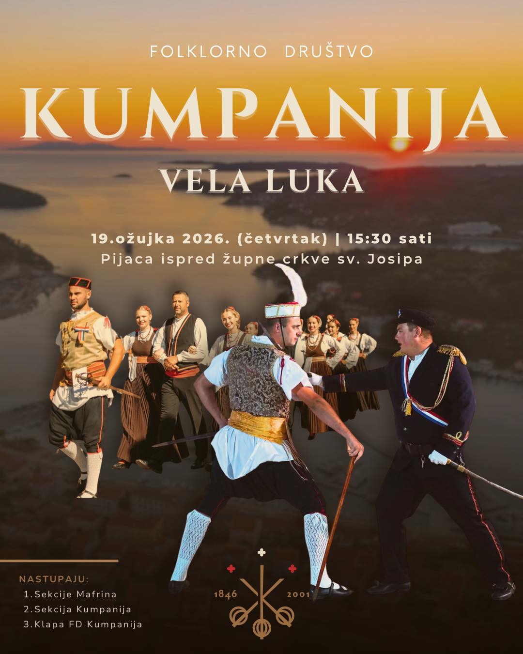 Kao i svake godine, ฤetiri dana prije glavnog godiลกnjeg javnog nastupa bubnjar i miลกnjiฤar ispred lokalnih crkvica i zgrade Opฤine sviranjem najavljuju nadolazeฤi nastup, blagdan naลกeg zaลกtitnika sv. Josipa te Dan opฤine Vela Luka.