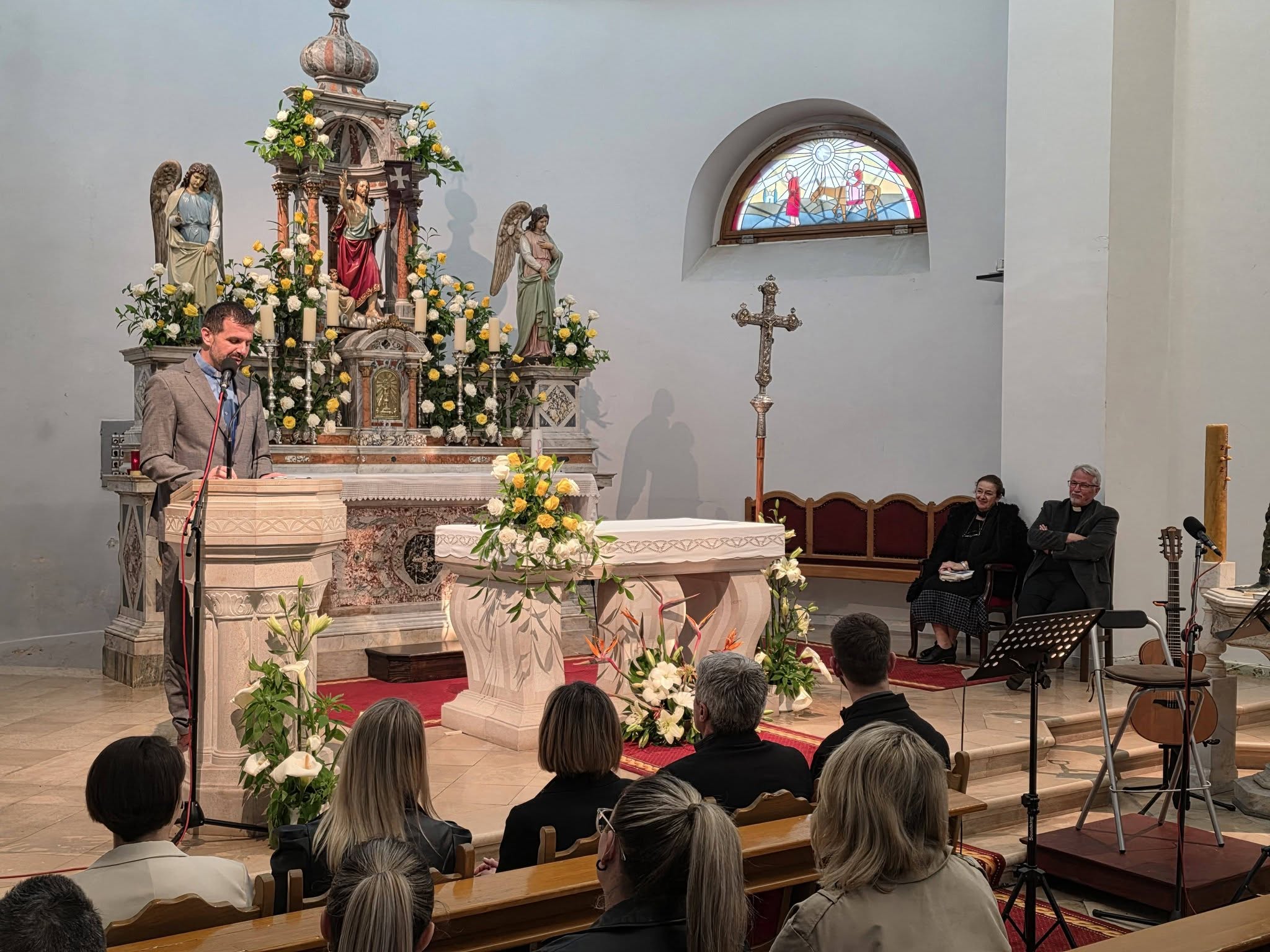 Uskrsnu meditaciju tijekom večeri pripremio je i pročitao župnik don Hrvoje Katušić, koji naglašava posebnu snagu glazbe u duhovnom životu.